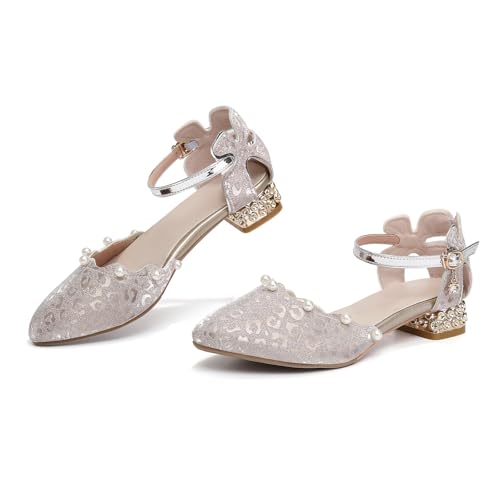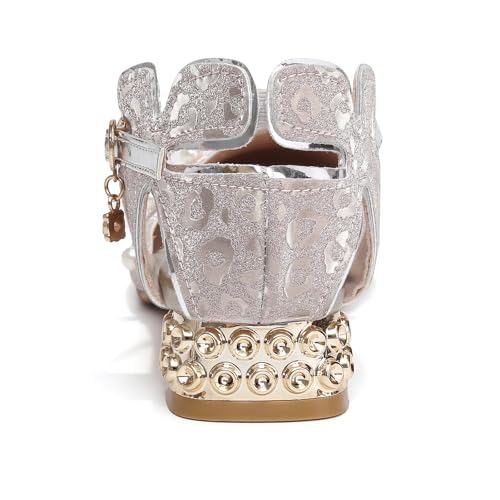 SWDZM Girls Dress Shoes Low Heel with Corals Glitter Princess Wedding Party Sandals for Little Big Kids 4