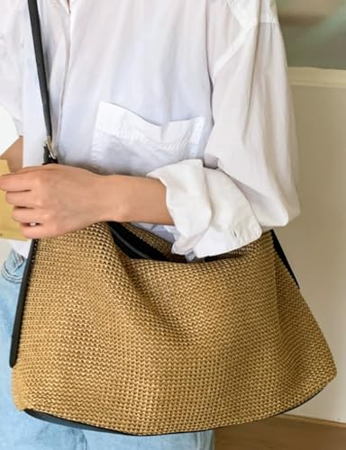 Straw Bag Slouchy Tote Bag for Women Summer Woven Beach Bag Large Shoulder Crossbody Bag Work Travel Purse 2025 7