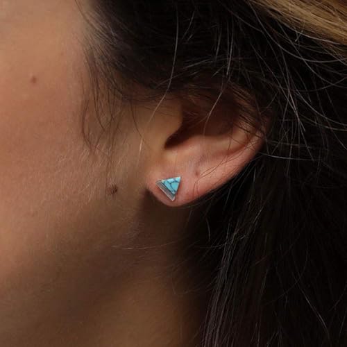 Michooyel Turquoise Stud Earrings for Women, 925 Sterling Silver and Handmade Turquoise Earrings Triangle Cut Simple Jewelry Earring 6