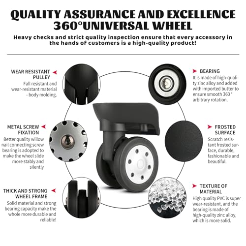 • Enhanced Travel Experience: With these 2Pcs of 360° rotating luggage wheels, enjoy a smoother and more comfortable travel experience, reducing strain and making your journeys more enjoyable.Luggage Wheels Luggage Wheels Replacement