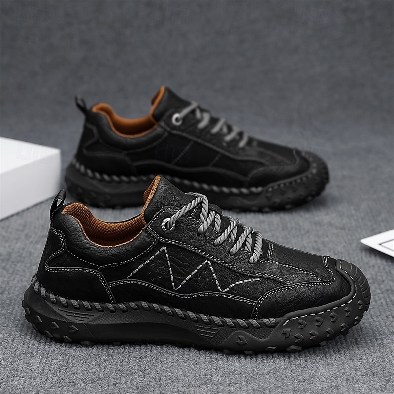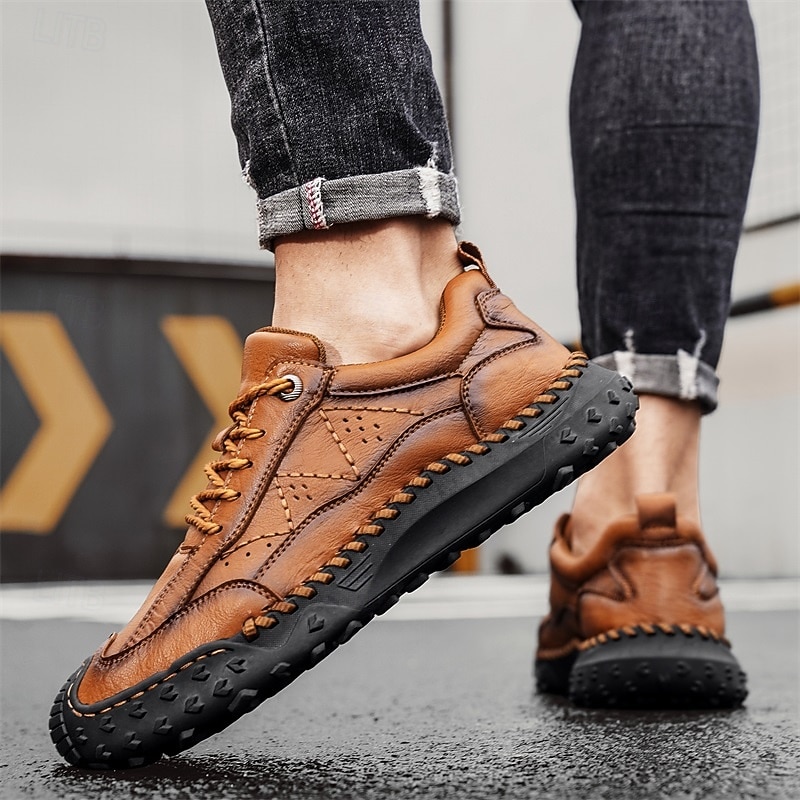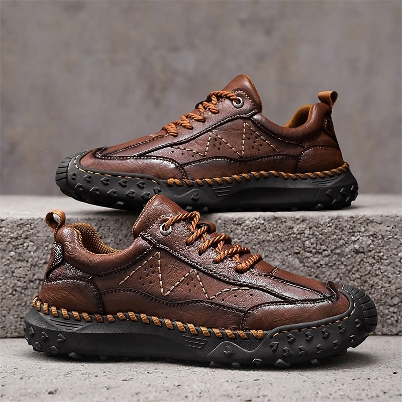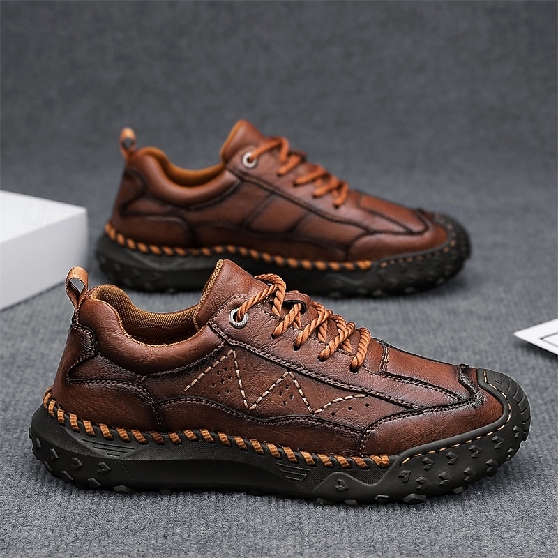 Men's Dark Brown Casual Sneakers Outdoor Lace-Up Walking Shoes with Flexible Non-Slip Sole for Work, Travel, Hiking and Daily Comfort 35