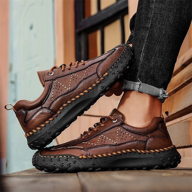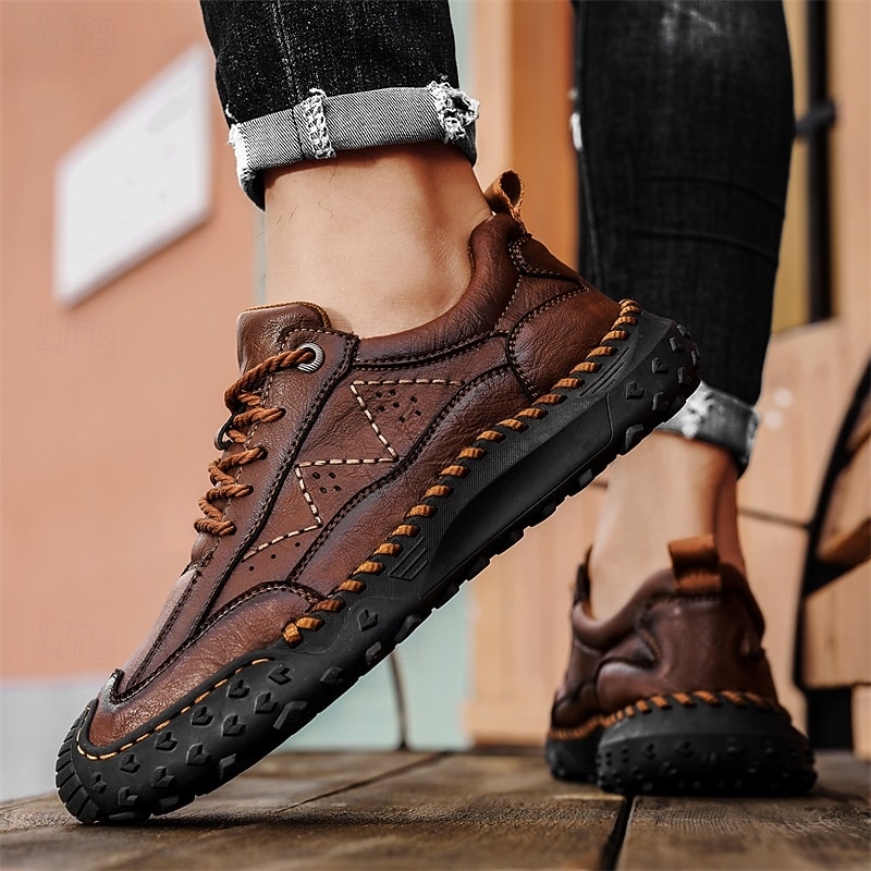 Men's Dark Brown Casual Sneakers Outdoor Lace-Up Walking Shoes with Flexible Non-Slip Sole for Work, Travel, Hiking and Daily Comfort 28