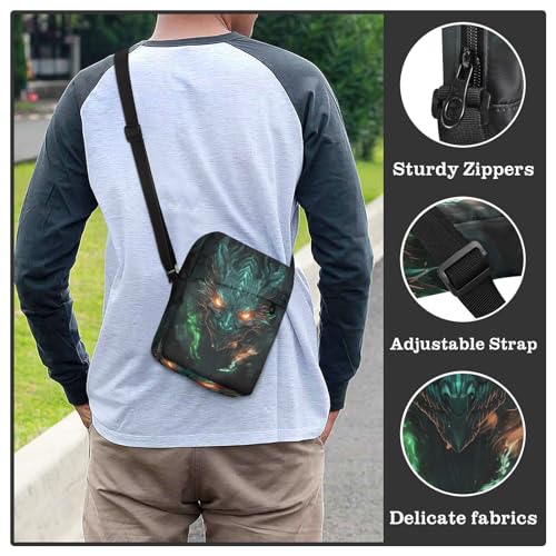 Crossbody Bag Green Fire Flame Dragon Messenger Bag for Women Men Purse Shoulder Bag Satchel Bag with Adjustable Strap 214B5299 5