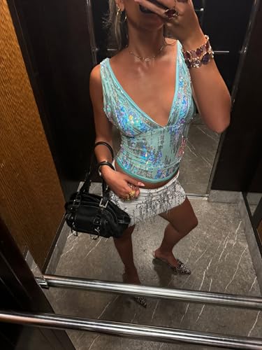 • Occasion: Glitter tank tops for women, y2k sequin top, sparkly tank tops for women, suitable for club, party, music festival clothing, disco clothes, beach, daily wear, night out, etc. It's the perfect balance of style and comfort