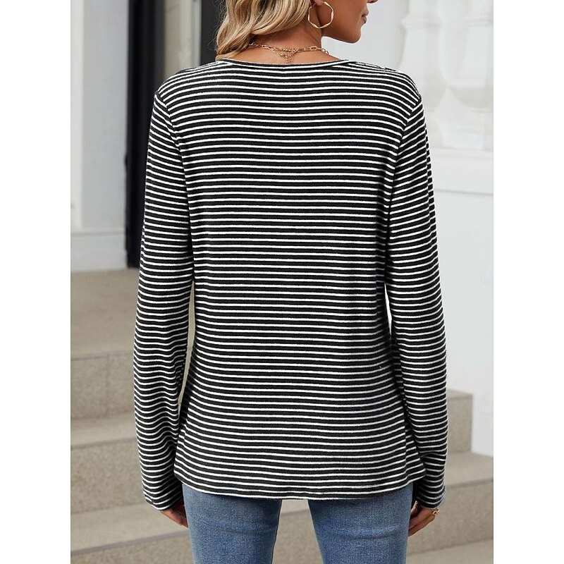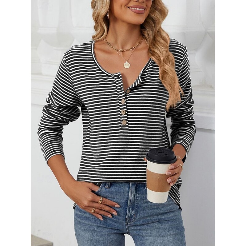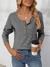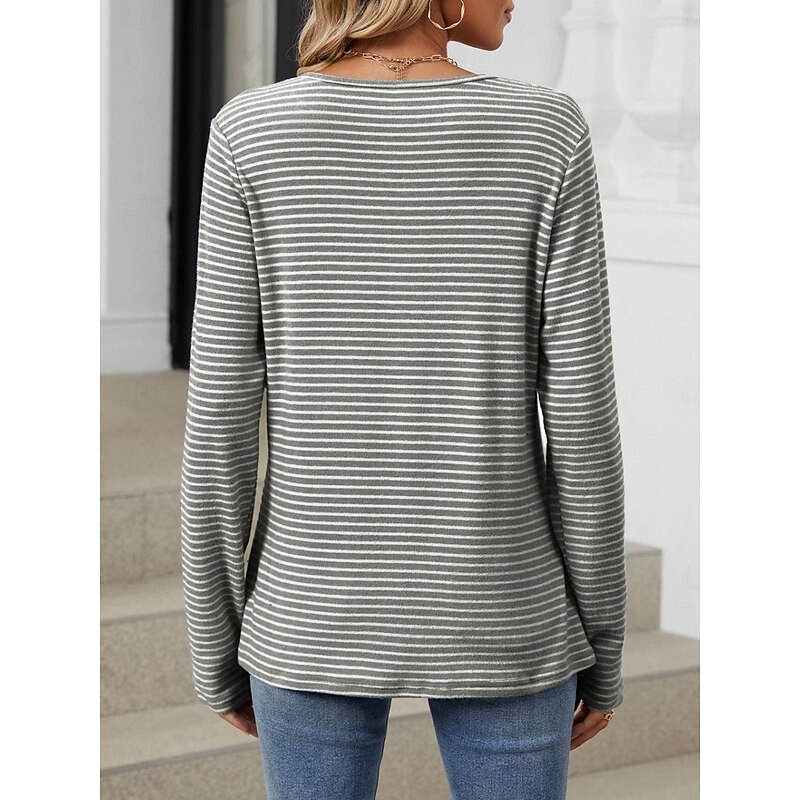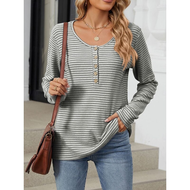 Women's Blouse Striped Stylish Casual Long Sleeve Crew Neck Regular Tops Daily Buttons Print Black Blue Green Gray Summer Spring Fall 17