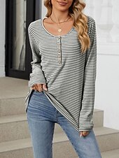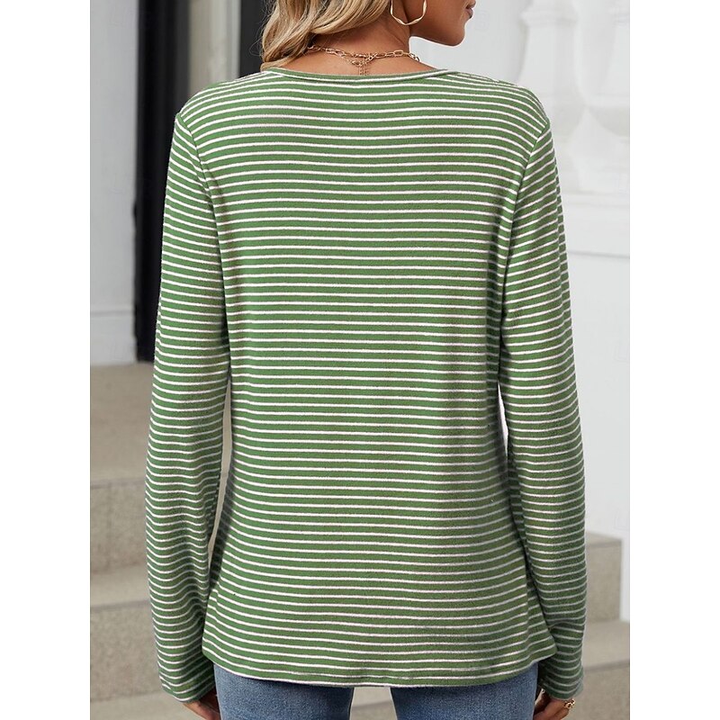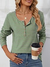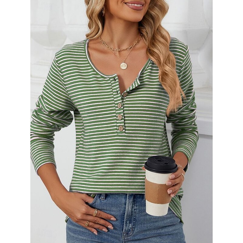 More information about Women's Blouse Striped Stylish Casual Long Sleeve Crew Neck Regular Tops Daily Buttons Print Black Blue Green Gray Summer Spring Fall