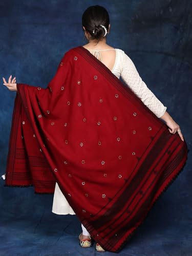 HOT ! Shawl from Kutch with Embroidered Flowers and Mirrors - Wool