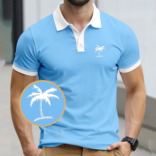 Men's Palm Tree Polo Short Sleeve Polo Shirts Collared Shirts Resort Daily Wear Vacation Wear 3D Print Summer Black Yellow Navy Blue 12