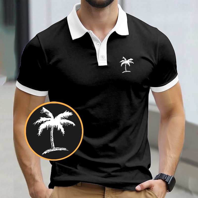More information about Men's Palm Tree Polo Short Sleeve Polo Shirts Collared Shirts Resort Daily Wear Vacation Wear 3D Print Summer Black Yellow Navy Blue