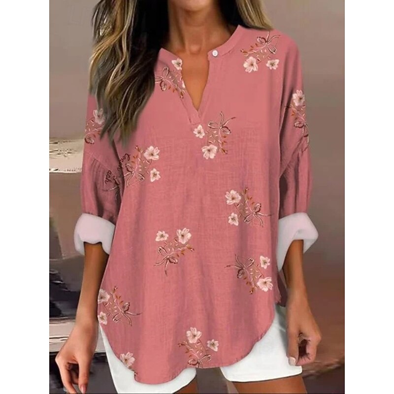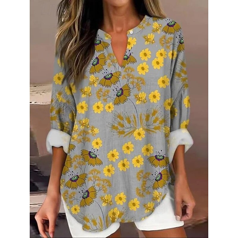 More information about Women's Boho Shirt Floral Graphic Bohemia Daily Casual Long Sleeve V Neck Regular Tops Daily Holiday Going out Patchwork Print White Yellow Wine Navy Blue Dusty Blue Spring, Fall, Winter, Summer