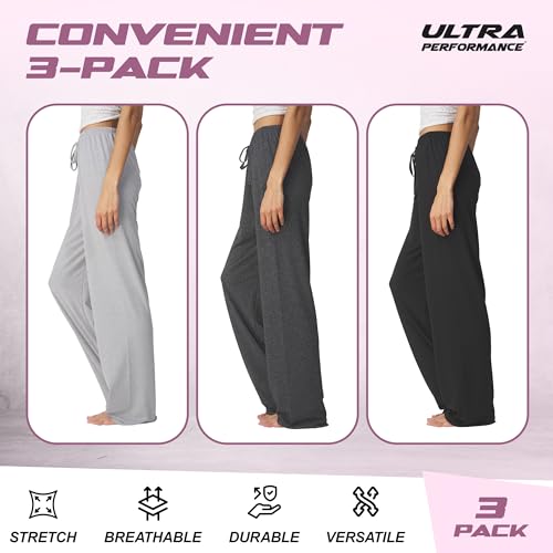 Ultra Performance Womens Pajama PJ Pants 3 Pack Lounge Bottoms Pajamas for Women (Avail in Plus Sizes) 3