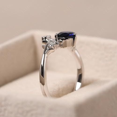 LUO Crescent Sun Moon Gemstone Ring, Sterling Silver 6x6MM Round Cut Engagement Birthstone Ring for Women 5