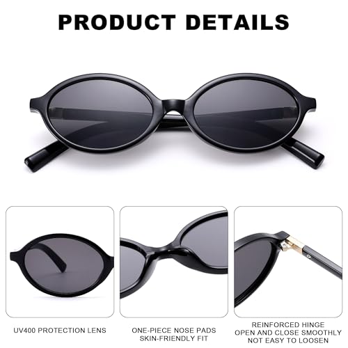 • UV400 Protection - The black oval sunglasses for women is made of high quality PC material, scratch resistant, wear resistant and not brittle, provide clear vision, restore color at the same time, can resist UV400 harmful rays, is the best choice for travel, driving, sports.