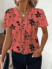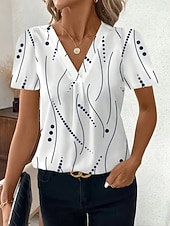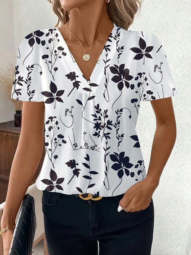 More information about Women's T Shirt Floral Graphic Geometric Fashion Modern Casual Short Sleeve V Neck Regular Tops Daily Weekend White / Black Black White Red Summer