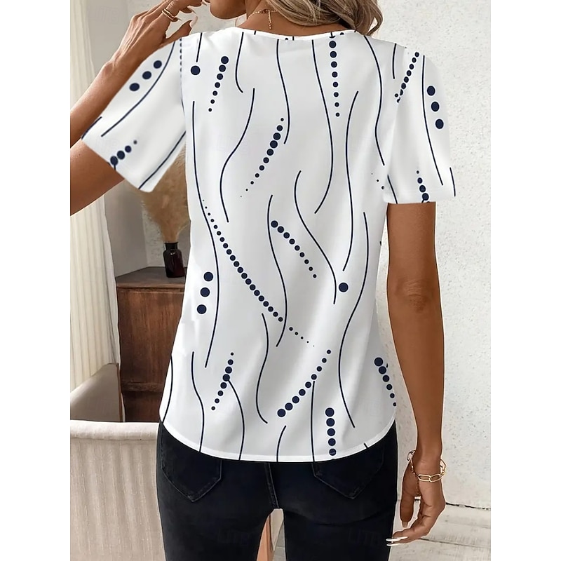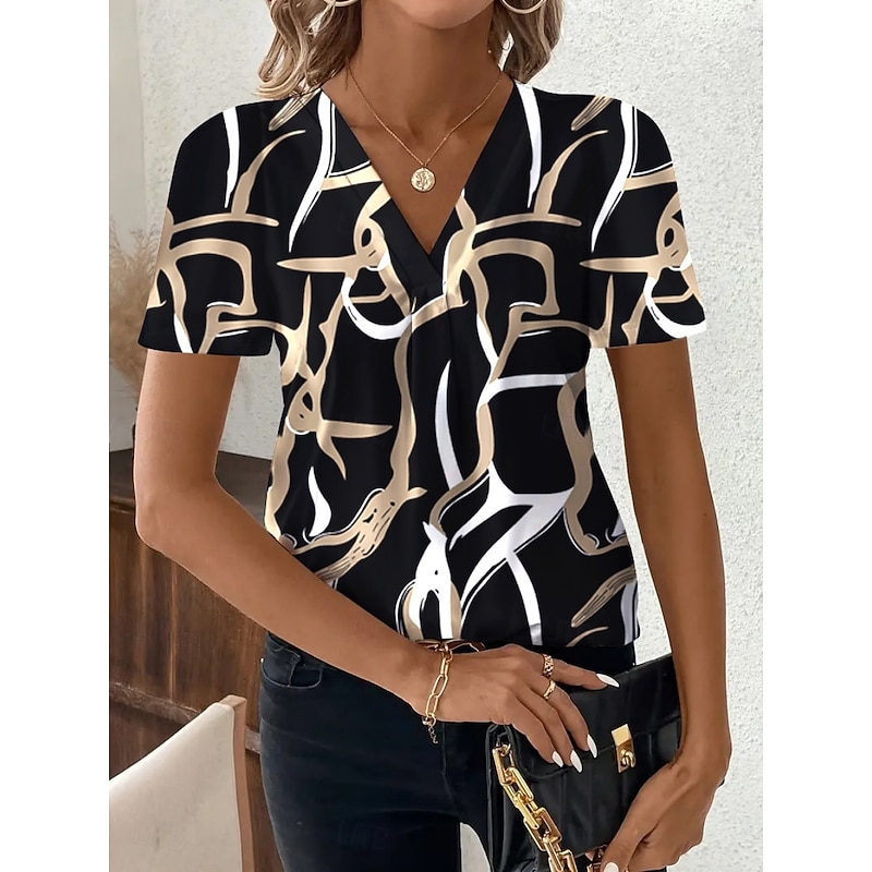 HOT ! Women's T Shirt Floral Graphic Geometric Fashion Modern Casual Short Sleeve V Neck Regular Tops Daily Weekend White / Black Black White Red Summer