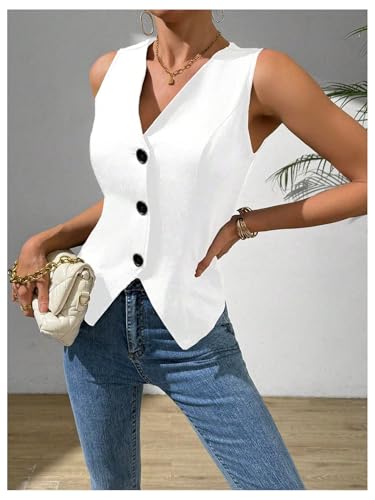 HOT ! Verdusa Women's Button Down V Neck Blazer Vests Old Money Split Sleeveless Asymmetrical Jacket Vest