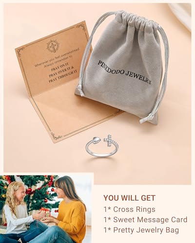HOT ! PINKDODO Adjustable Cross Rings for Teen Girls Easter Religious Gifts for Teen Girls Women