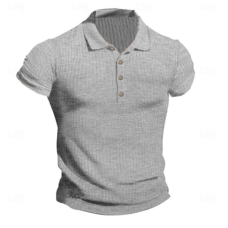 More information about Men's Golf Shirt Golf Polo Work Casual Lapel Short Sleeve Basic Modern Plain Horizontal Stripes Button Spring & Summer Regular Fit White Navy Blue Khaki Light Grey Golf Shirt