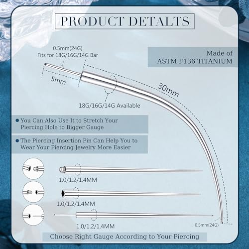 • ASTM F136 Titanium Piercing Kit Taper Insertion Pin---Implant grade G25 Titanium,safe for long-term contact with body piercing.No lead & Nickle,perfectly suited for people with sensitive skin,hypoallergenic,no irritation for your skin,durable and reusable