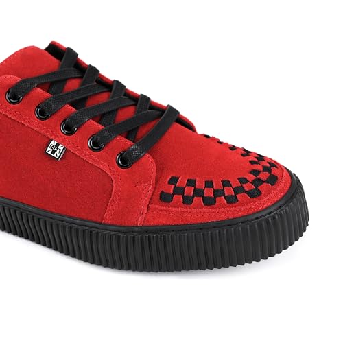 • Edgy Modern Design: Step up your style with the Red Suede Creeper Shoes. These lace up creepers feature a black suede upper, interlace detailing, and five durable eyelets. Its signature creeper ridged sole bring a distinct edge, perfect for everyday wear or adding an edge to any outfit.