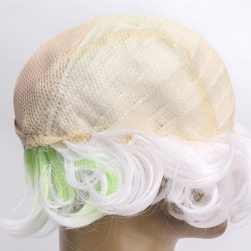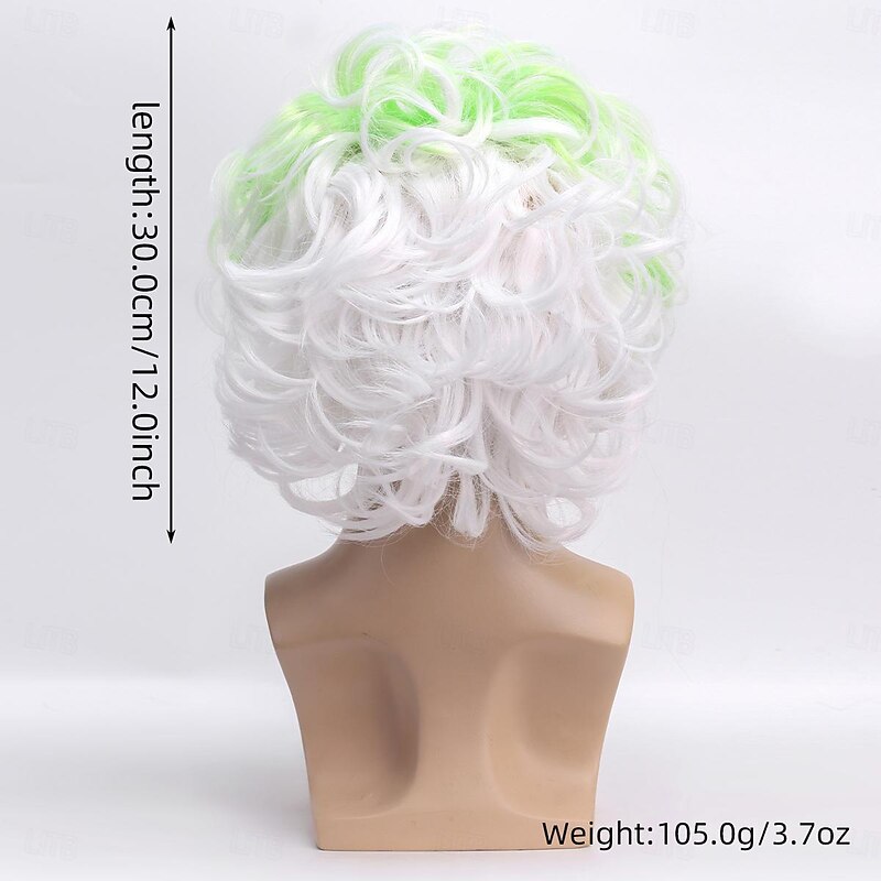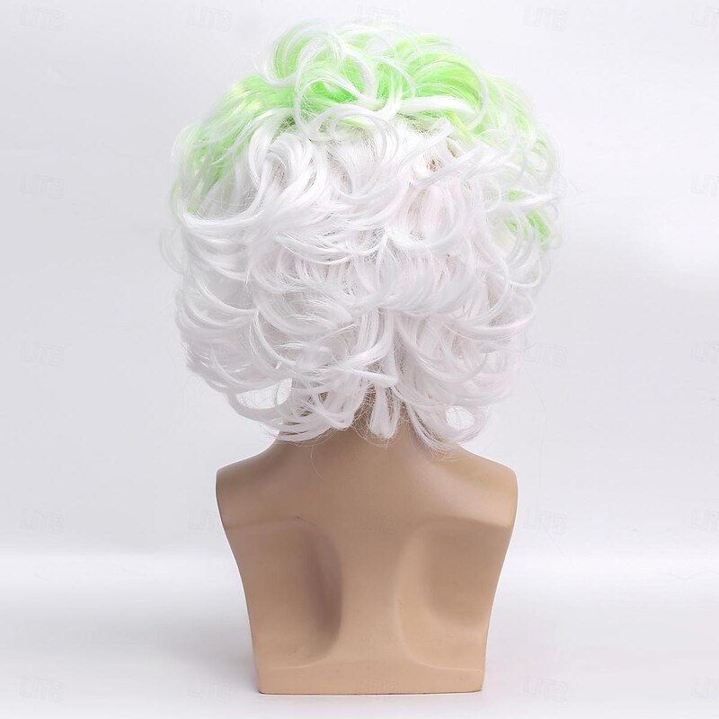 Men's Beetlejuice 2 Cosplay Short Fluffy Wavy Clown Bald Wig For Carnival Party Costume wigs For Adult Halloween Wigs 8