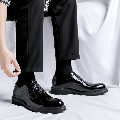 Men's Comfort Patent Leather Lug Sole Dress Oxfords Classic Lace-Up Non-Slip Chunky Heel Shoes for Business Office Daily 6
