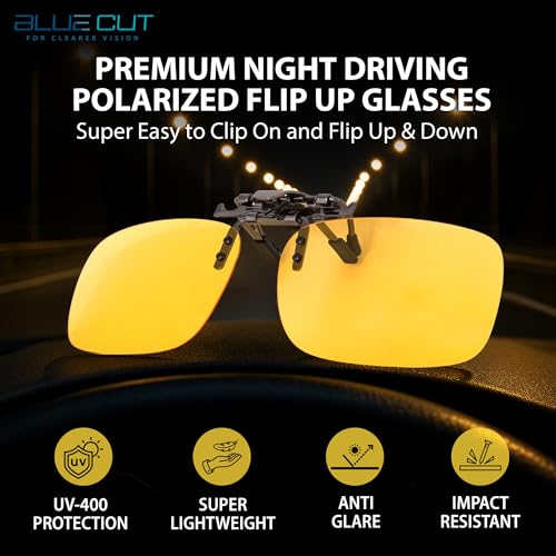 BLUE CUT Clip on Polarized Night vision Glasses Flip up Sunglasses UV-400 to Wear Over prescription Glasses for night driving 1