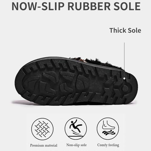 Women’s Slippers Platform Mini Boots for Suede Leather Slip-on Fluffy Warm Comfy 4