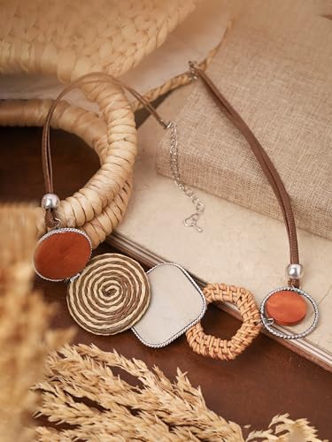 MINACHI Handmade Braided Necklace for Women, Wooden Beads, Rattan Charm, Vintage Style, Gift Jewelry 5