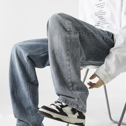 HOT ! PRIJOUHE Mens Wide Leg Jeans Elastic Waist Baggy Jeans Casual Drawstring Denim Pants Trousers
