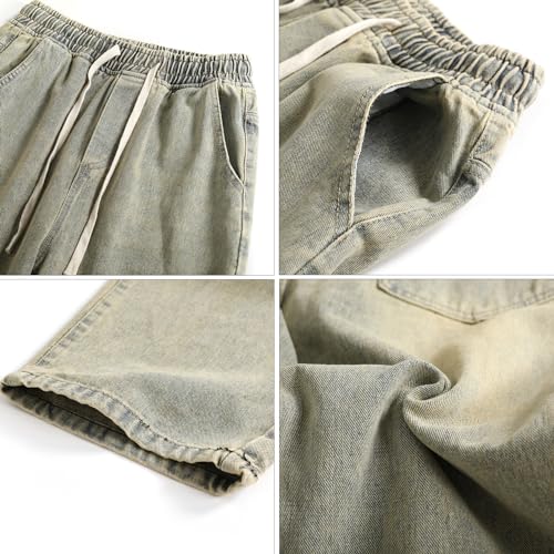 PRIJOUHE Mens Wide Leg Jeans Elastic Waist Baggy Jeans Casual Drawstring Denim Pants Trousers 7