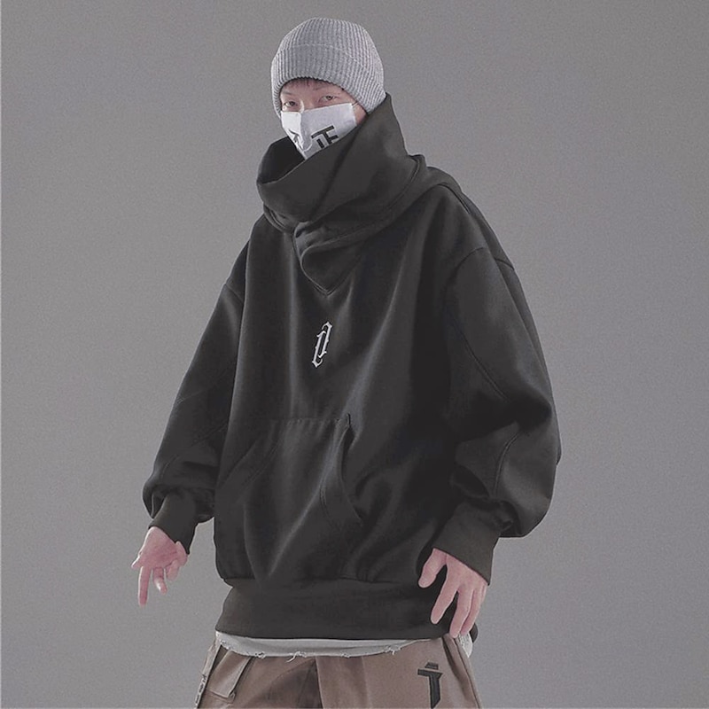 More information about Ninja Double Neckline Cotton Pullover Techwear Harajuku Men Hoodie Hip Hop Streetwear Hoodies Sweatshirts Punk Gothic