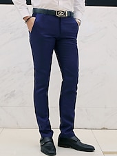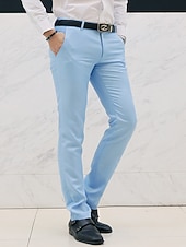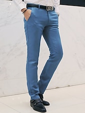 More information about Men's Graduation Dress Pants Trousers Chino Pants Suit Pants Zipper Plain Ankle-Length Wedding Party Work Fashion Business Lake blue Black Micro-elastic