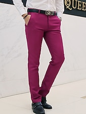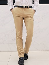Highlights - Fly Type: Button closure. - Design: Slim fit, straight cut, button front with a zip-fly closure, classic dress pants. - Outfit and Occasions: This straight pants are an essential choice in every wardrobe. They are quite suitable to wear with a dress shirt, jacket, and coat. Perfect for business, office, proms, and daily casual wear. Can be worn on various occasions. - About Size: Please kindly refer to our size chart and compare it with your own fitted pants.