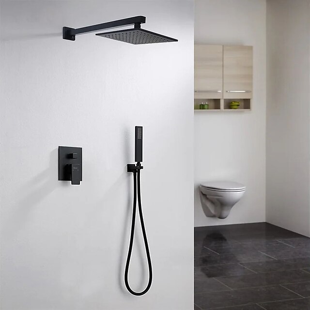 Concealed Shower Faucet Combo Set 12" Rainfall Shower Head, Shower System Mixer Rough In Valve Rainfall High Pressure Head with Handheld, Wall Mounted Tub and Shower Trim Kit Bathroom Bath 1
