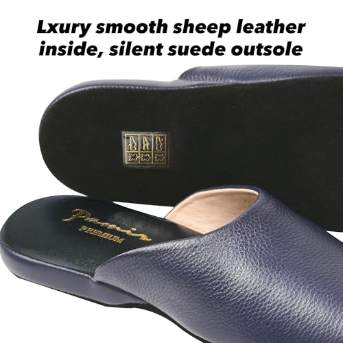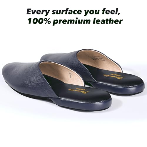 • LUXURY MEETS PORTABILITY: Crafted from supple leather for elegant comfort on hardwood floors and plush carpets at home. Includes a chic travel pouch, allowing these slides to tuck neatly into luggage for effortless luxury on hotel stays and trips.