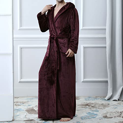 Mens Robe Warm Winter Wrap Style Hooded Bathrobe Lightweight Comfy Full Lenght House Robes With Pocket Loungewear 1