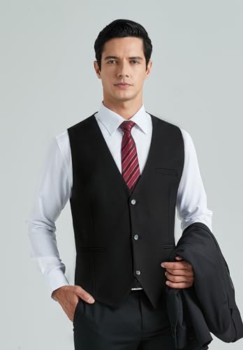HISDERN Mens Suit Vest Business Casual Dress Waistcoat Vest Solid Color Formal Wedding Vests for Suits or Tuxedo 1