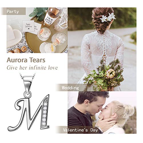 More information about Aurora Tears Letter Necklace Initial 925 Sterling Silver Alphabet Pendant Crystal Name Gift Women Cubic Zirconia Jewelry