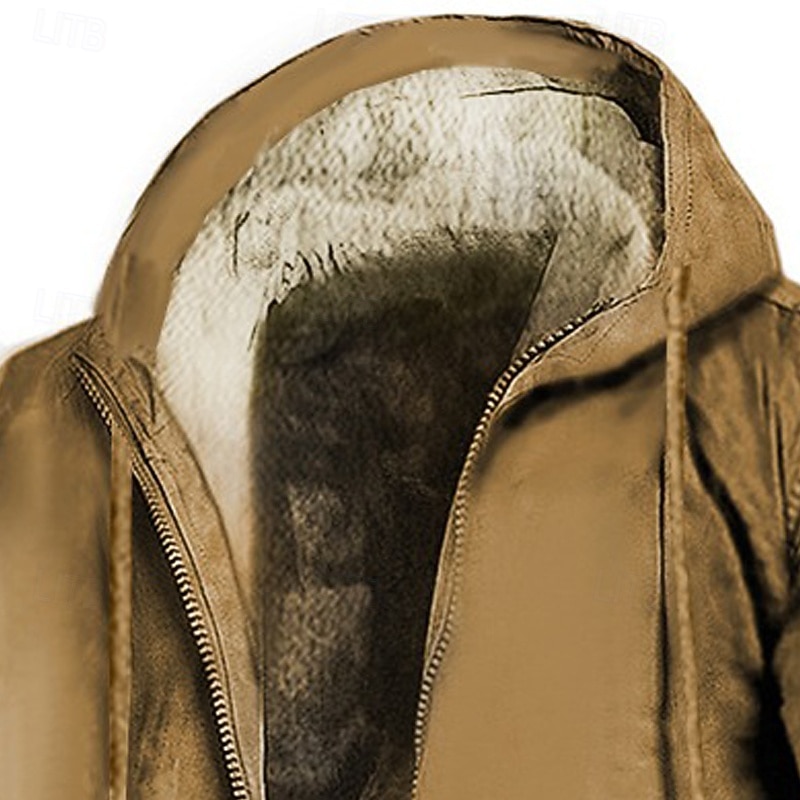More information about Men's Hoodie Full Zip Hoodie Fleece Hoodie Fleece lined Hoodie Brown Green Khaki Gray Hooded Plain Patchwork Sports & Outdoor Casual Daily Streetwear Cool Sportswear Fall Winter Clothing Apparel