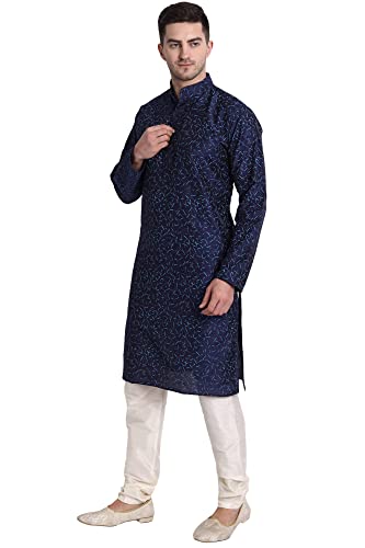 SKAVIJ Men's Art Silk Printed Kurta Pajama Set Festive Wear Dress Suit 2