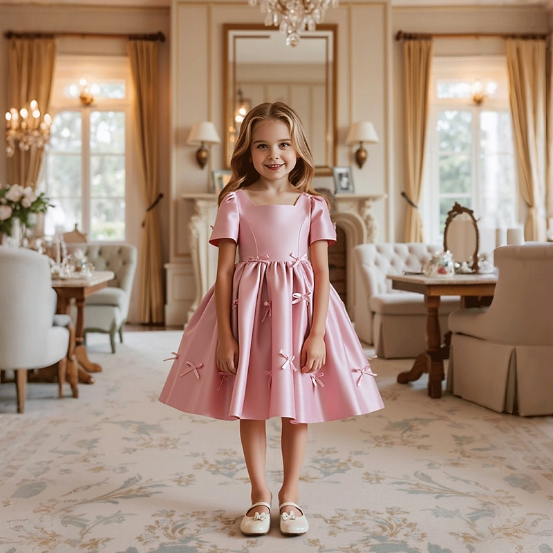 More information about Kids Girls' Party Dress Solid Color Short Sleeve Special Occasion Birthday Princess Sweet Polyester Midi Summer Spring Fall kids Pink Wine