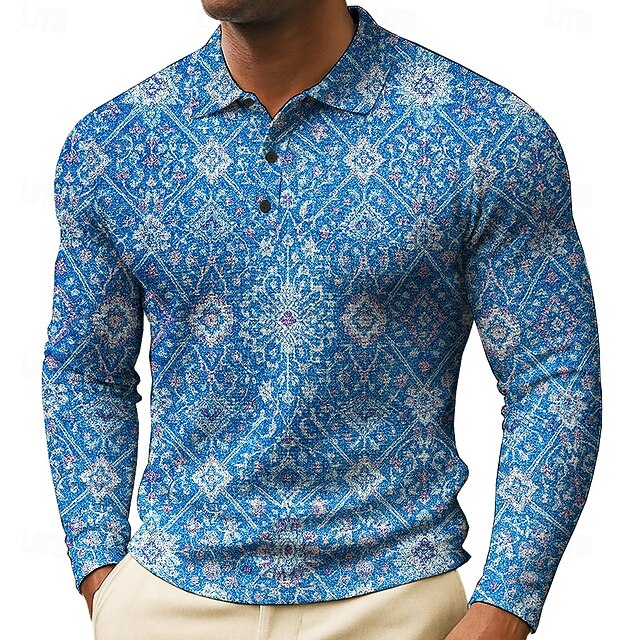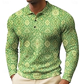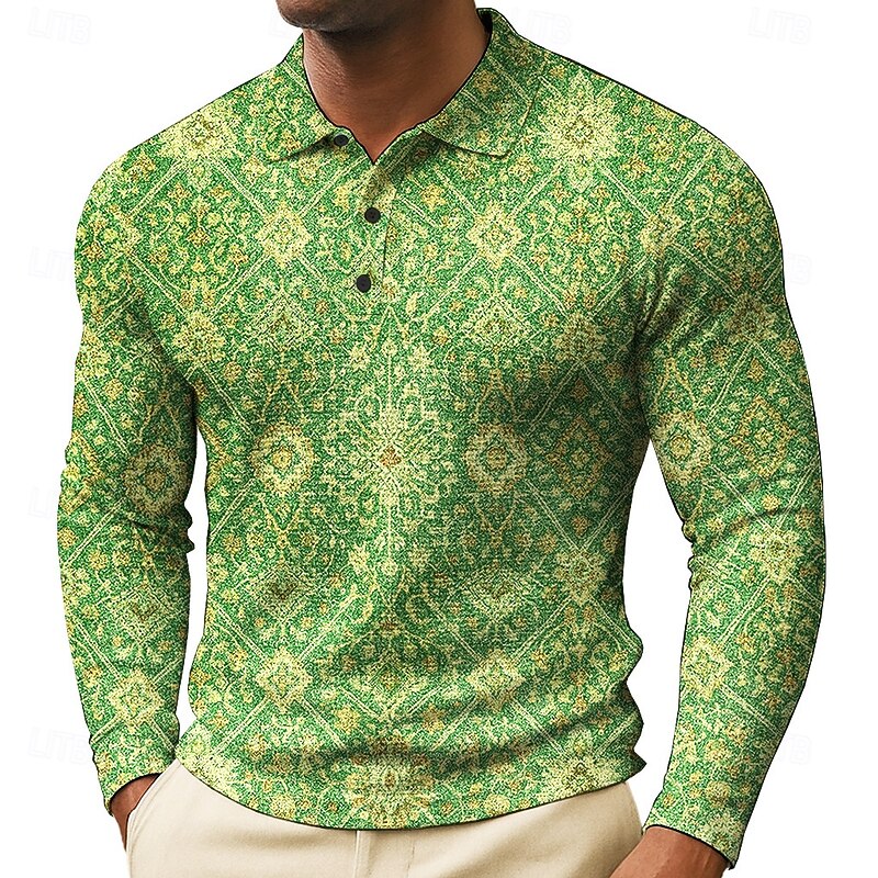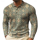 More information about Men's Graphic Waffle Polo Shirts Long Sleeve Polo Shirts Collared Shirts Casual Daily Wear Buttons Spring Fall Winter Blue Brown Green