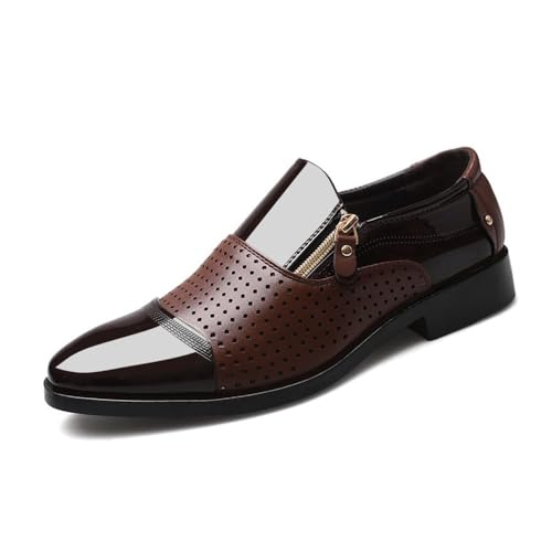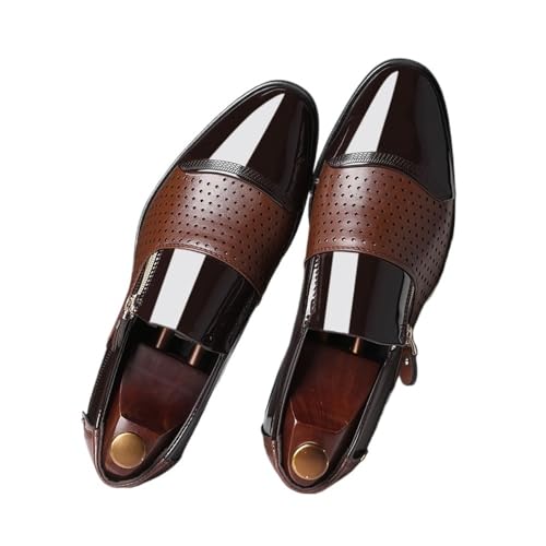 Four Seasons Men's Business Leather Shoes Slip-On Sandals Hollow Shoes Breathable Wedding Shoes Oxfords(Black,47) 1