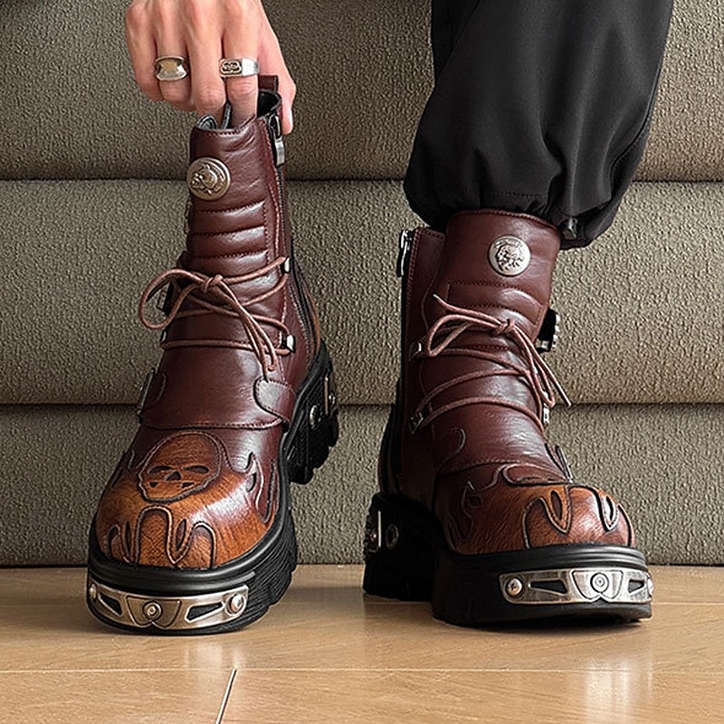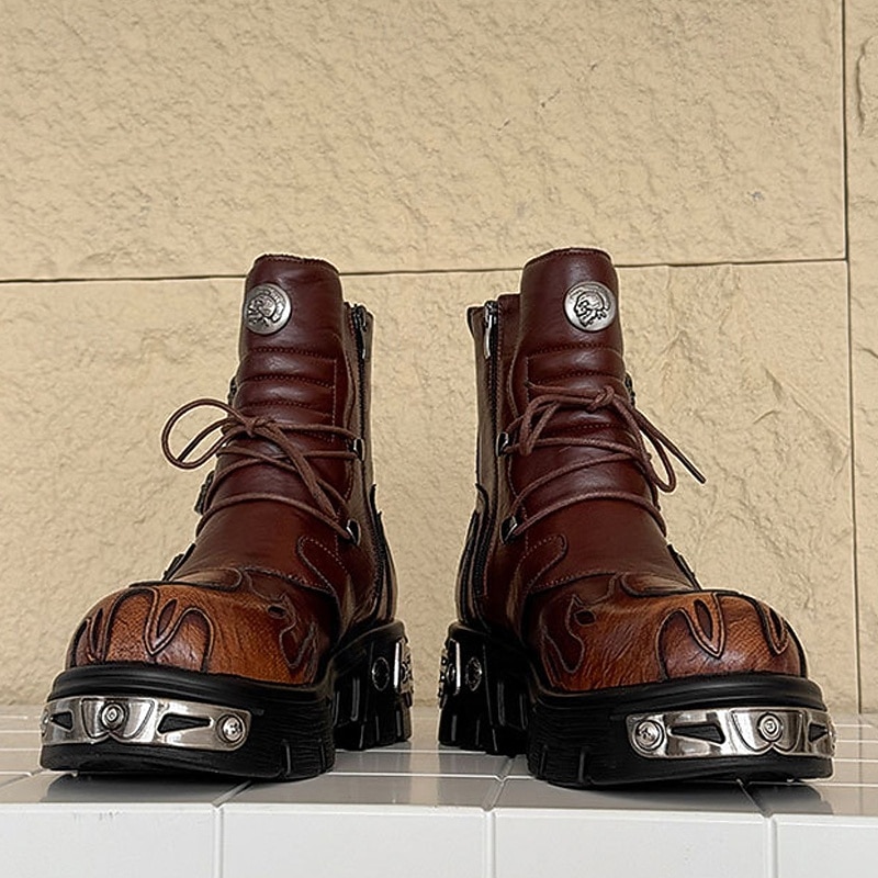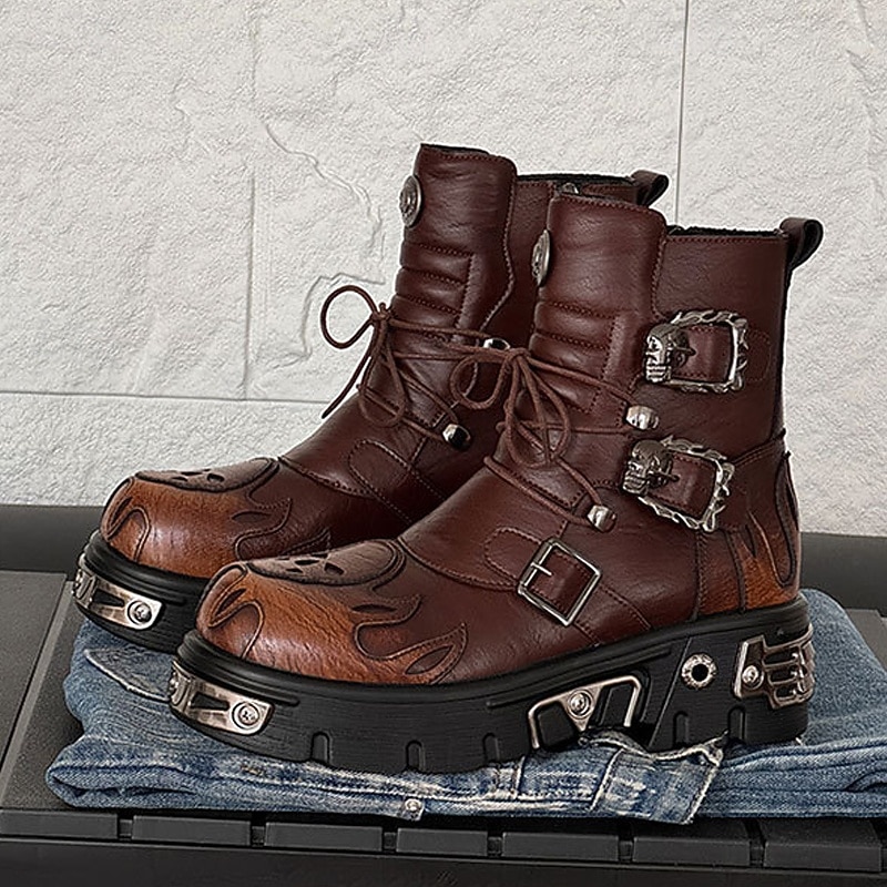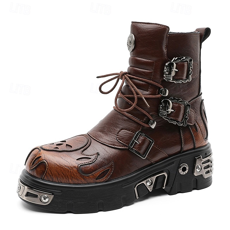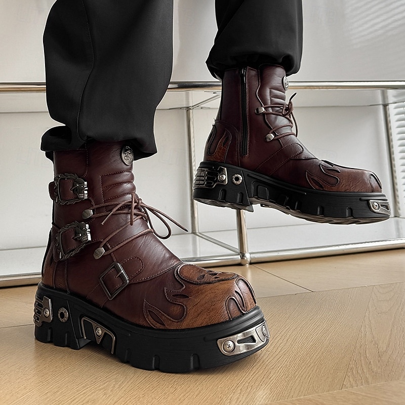$94.99 - Men's Brown Gothic Flame Platform Boots Lace-Up Punk Biker Boots with Buckles and Metal Details for Halloween Parties, Horror Cosplay and Themed Festivals 2025. Shop for cheap Shoes For Men online? Buy at lightinthebox.com on sale today!