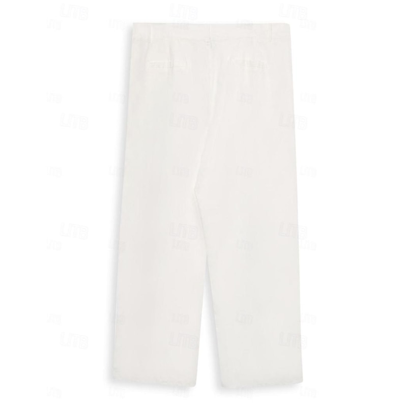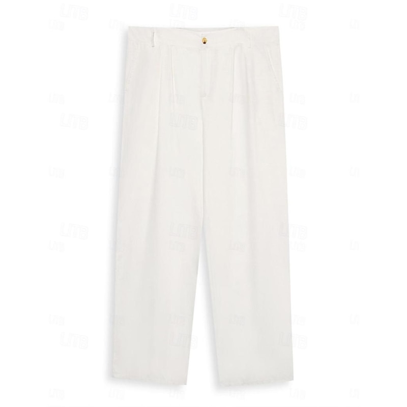 Men's Dress Pants Linen Pants Trousers Summer Pants Buttons Front Pocket Straight Leg Plain Comfort Breathable Casual Daily Holiday Fashion Basic White Beige 1