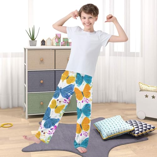 Colorful Butterfly Boys Long Pants Soft Trousers Elastic Waist Kids Lounge Bottoms with Pockets S-XL 5