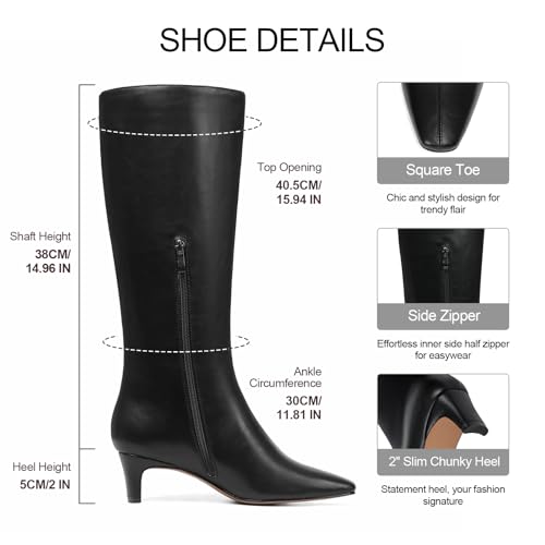 Tscoyuki Knee High Boots for Women Kitten Low Heel Square Toe Tall Boots Side Zipper Vegan Leather Heeled Long Fall Boots for Office Dating Party Work Trendy 5