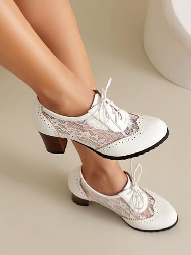 • CLASSIC DESIGN: Vintage-inspired oxford pump features elegant lace overlay and PU leather construction with traditional wingtip brogue detailing