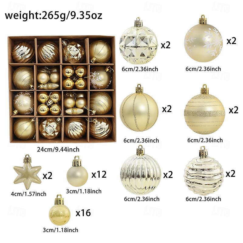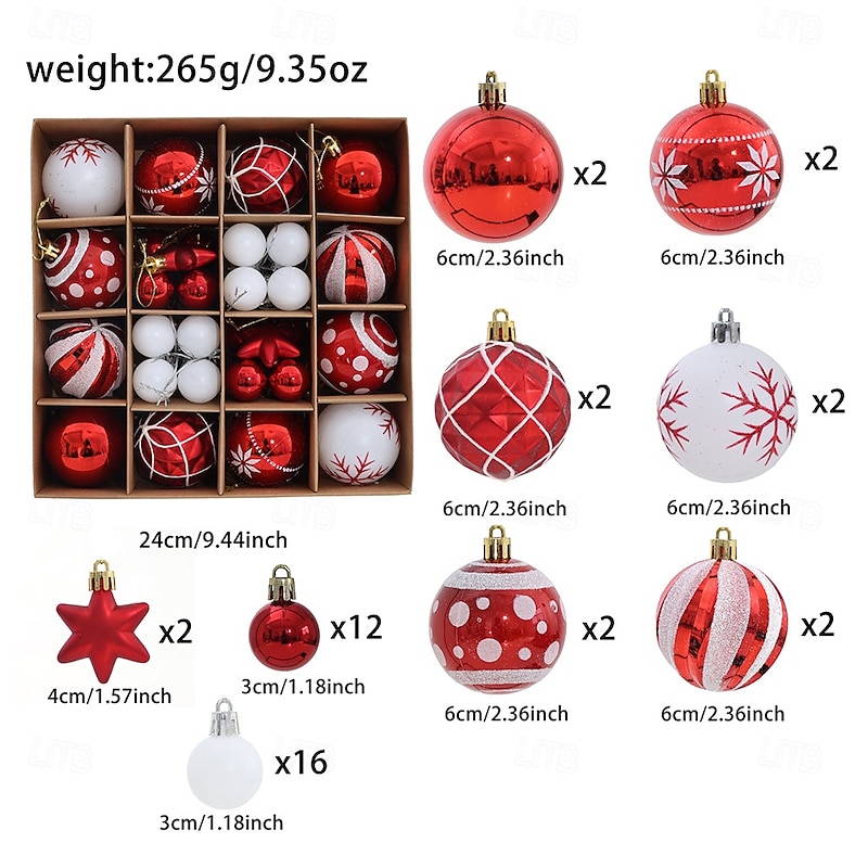 More information about 42 Pcs Christmas Tree Balls Baubles Ornaments 3cm 6cm Xmas Decorations Painted Shatterproof Gift Set For Holiday Party Christmas Tree Hanging Decoration Accessories